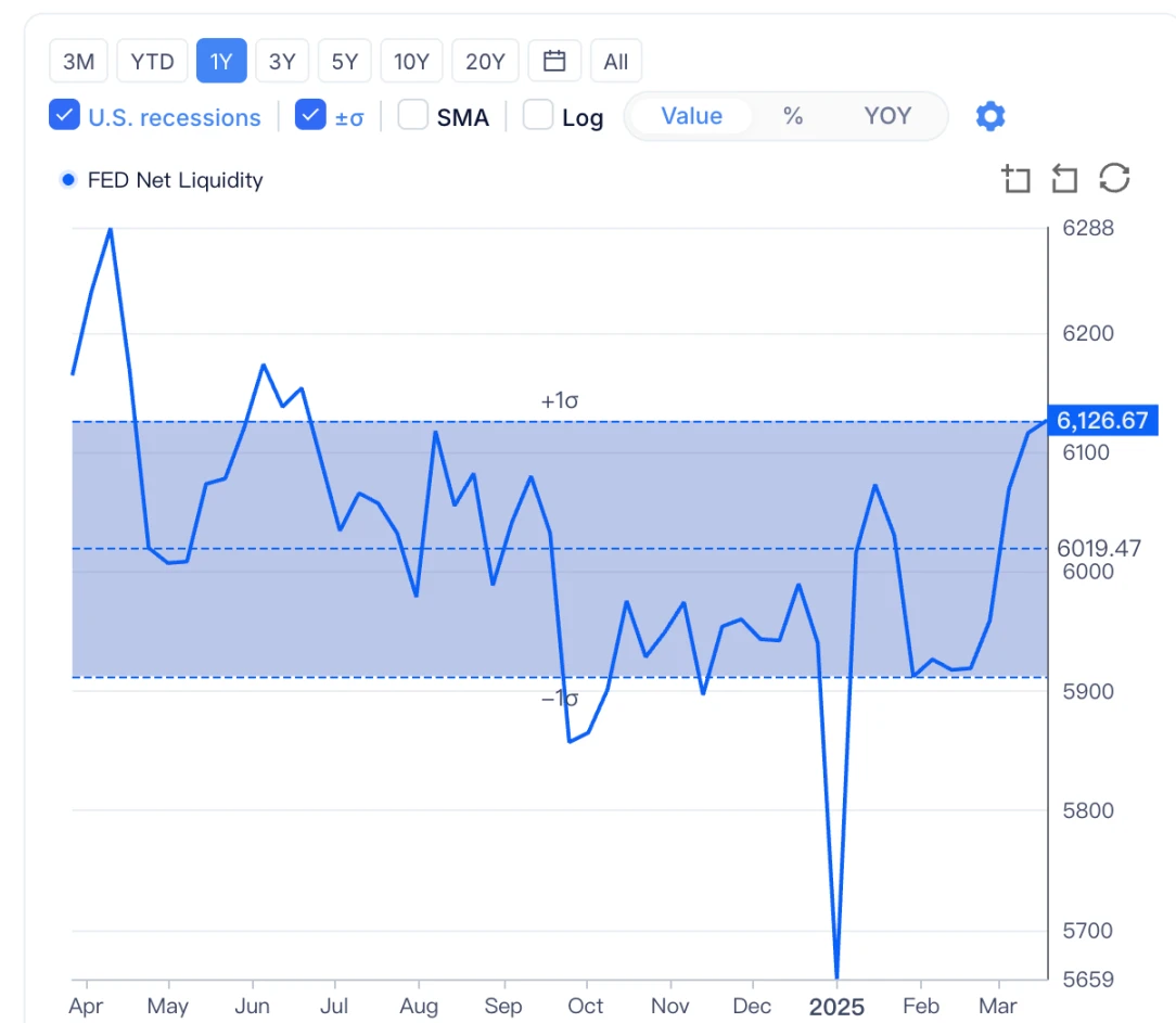 流动性回升:广义流动性本周达 6.1 万亿,TGA 账户流出推动流动性改善,美联储贴现窗口使用量下降,表明市场资金压力缓解。
