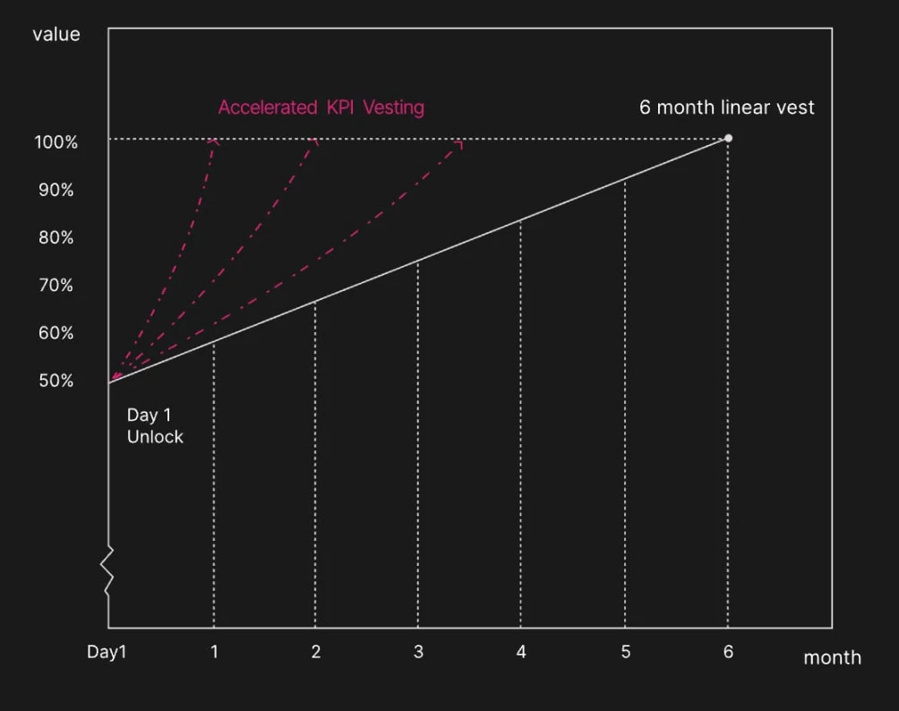 MegaETH 官方发行的 1 万个灵魂绑定 NFT——「The Fluffle」,具备独特的动态调整机制。每个 NFT 依据用户的不同活动情况,划分为多个可进化阶段,阶段等级越高,持有者能获得的奖励越丰厚。「The Fluffle」发行时,部分 NFT 通过免费空投发放,其余则以每个 1 ETH 的价格出售。该系列 NFT 代表着至少 5% 的 MegaETH 网络所有权。通过这种方式分配的代币,将在 TGE 时释放 50% ,剩余 50% 在 6 个月内按线性方式逐步释放。值得一提的是,若用户达成特定 KPI,还能加快代币的释放速度。因此,持有「The Fluffle」NFT 的用户,为了获取更多或更快释放的奖励,有必要与 MegaETH 网络进行更多交互。