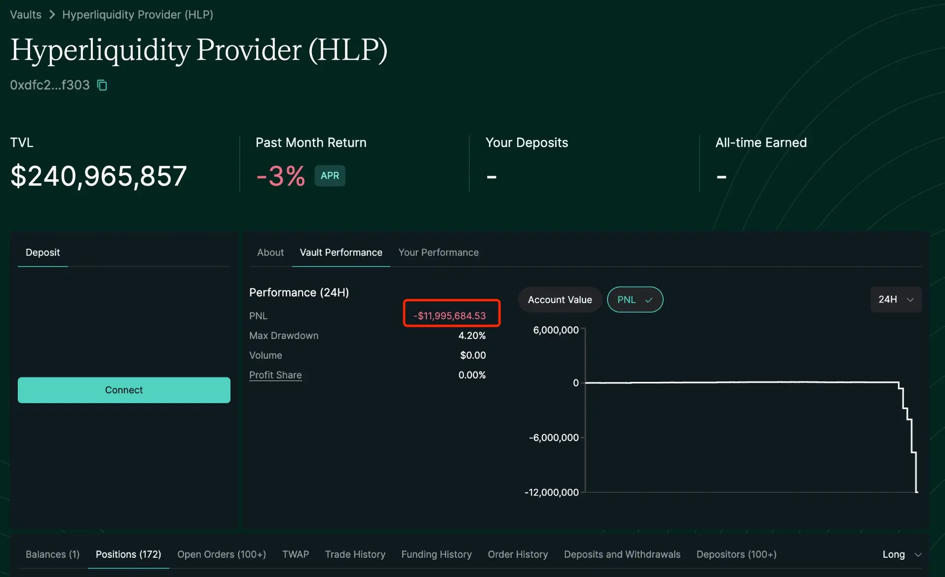在事件发生后,据 HyperLiquid 官网信息,其 HLP TVL 短时骤减至 1.97 亿美元。 据悉,HLP TVL 此前高达 2.4 亿美元。