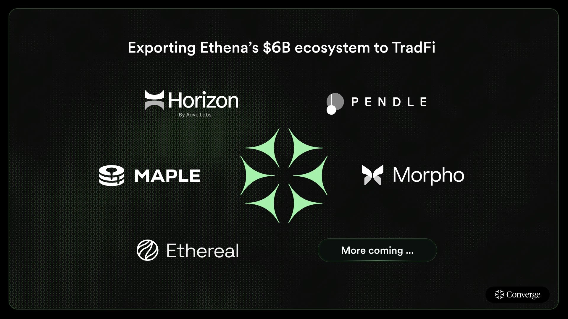 而就在上周,Ethena Labs 与 Securitize 联手发布 Converge,一个传统金融和数字美元结算网络。愿景是提供首个专为 TradFi 与 DeFi 融合而设计的结算层区块链。