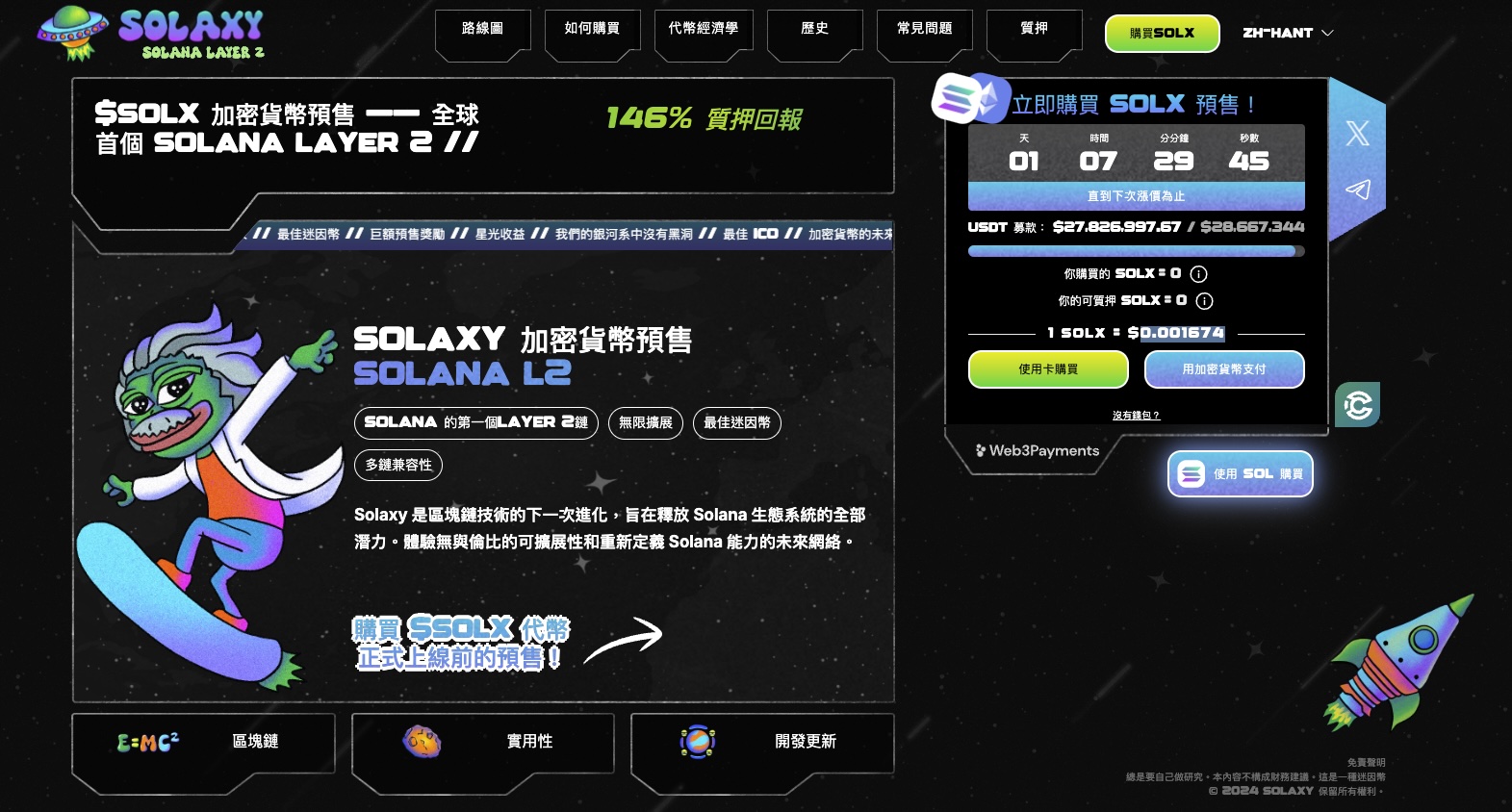 $SOLX仍在预售阶段,在预售结束后再上市DEX及CEX,建议投资者可进入官方网站、X及Telegram了解预售最新资讯。