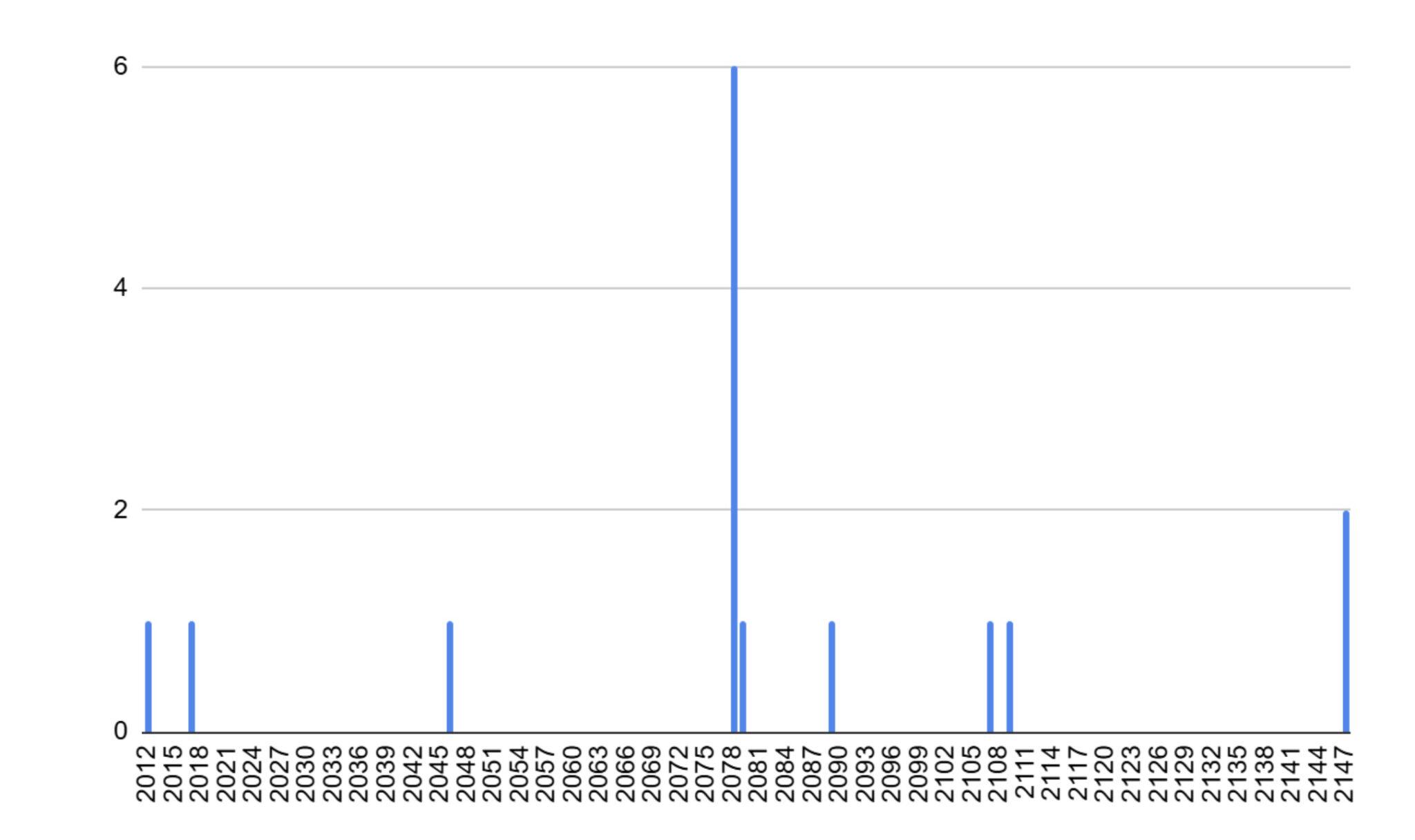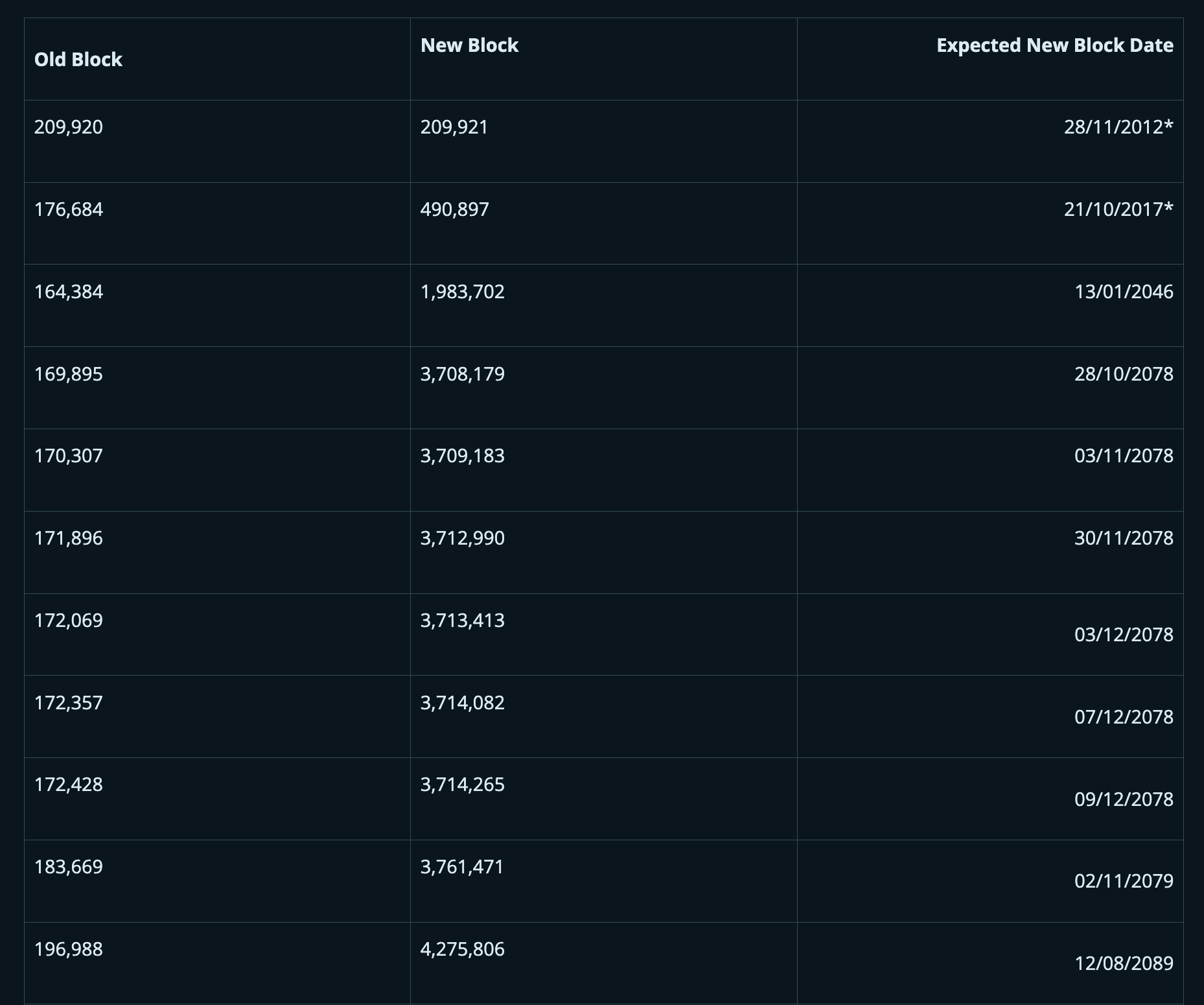 下一个可能被复制的脆弱区块是 2012 年 3 月的 169985。这个 Coinbase 只花费了刚刚超过 50 BTC,远远低于 170 BTC。当然,50 BTC 是当时的补贴,而当这一Coinbase交易在 2078 年变得容易被重复时,补贴就会低得多。因此,要利用这一点,矿工将需要烧掉大约 50 BTC 的费用,而这些费用他们是拿不回来的,因为这些费用必须发送到 2012 年的旧产出中。谁也不知道 2078 年比特币的价格会是多少,但这种攻击的成本也可能高得吓人。因此,这个问题可能不是比特币的主要风险,但仍然令人担忧。