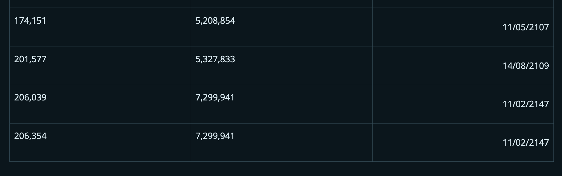 因此,下一个可能出现重复交易的区块是 1,983,702,将于 2046 年 1 月左右产生。2012 年 1 月产生的 164,384 区块中的 Coinbase 交易 向七个不同的输出地址发送了 170 BTC。因此,如果 2046 年的矿工想要进行这次攻击,他们不仅需要足够幸运地找到这个区块,还需要烧掉不到 170 BTC 的费用,总成本略高于 170 BTC,其中包括 0.09765625 BTC 区块补贴的机会成本。按照目前 88500 美元的比特币价格计算,这将花费超过 1500 万美元。至于 2012 年币库交易的七个地址归谁所有,目前还不得而知,密钥很有可能已经丢失。目前,该 Coinbase 交易的所有七个输出地址都已被使用,其中三个在同一笔 交易 中使用。我们认为这些资金可能与 Pirate40 庞氏骗局有关,但这只是我们的推测。因此,这次攻击看起来不仅代价高昂,而且对攻击者来说几乎毫无用处。要在硬分叉中将 31 年前的 2015 年 11 月节点从网络中删除,这将是一笔不小的开支。