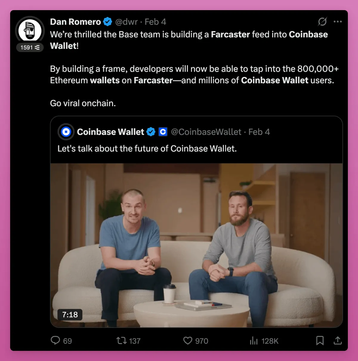 我相信,在Snapchain正式启动且Farcaster准备好规模化之后,这一社交生态将集成至Coinbase钱包。
