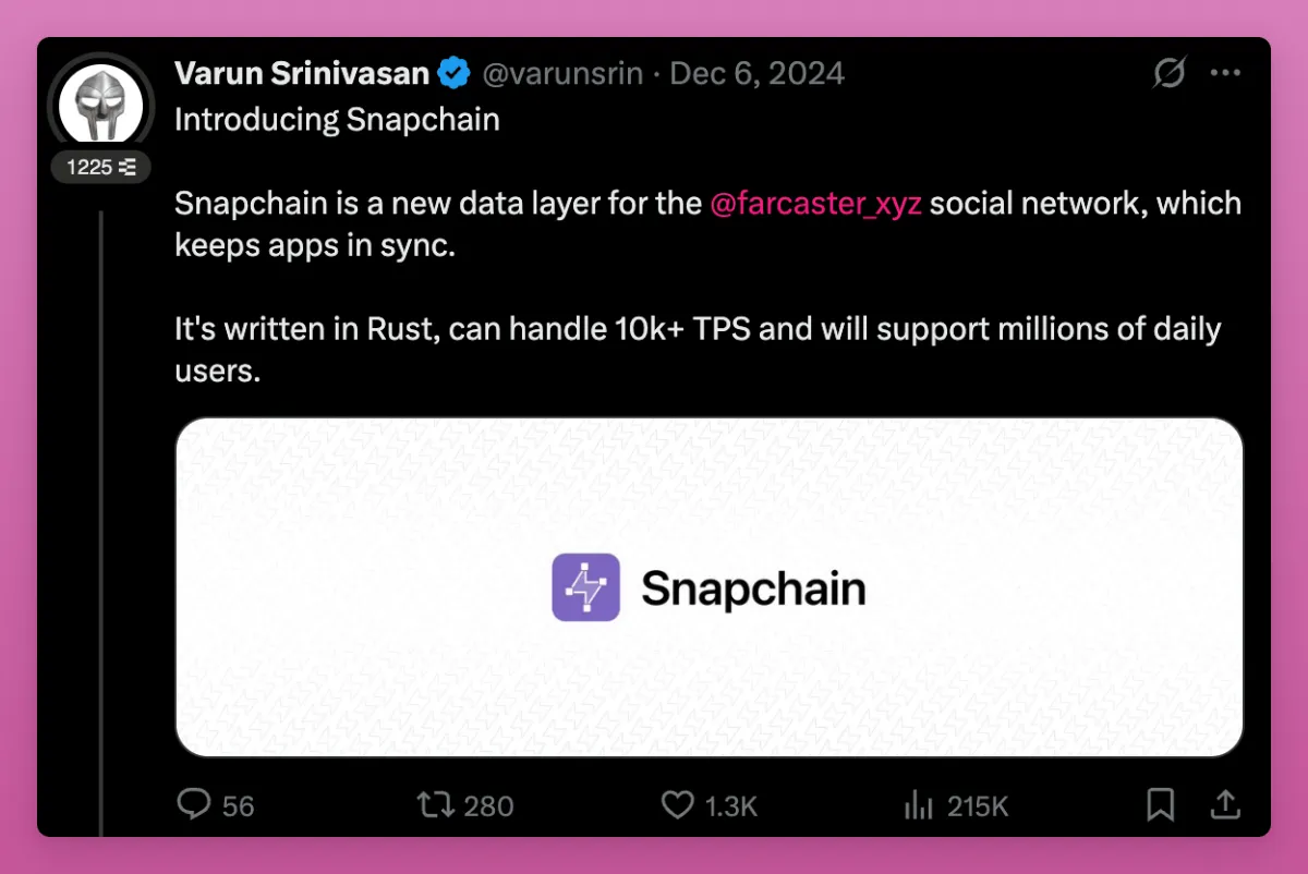 这就是专为Farcaster社交网络打造的Layer1区块链——Snapchain大显身手之处。