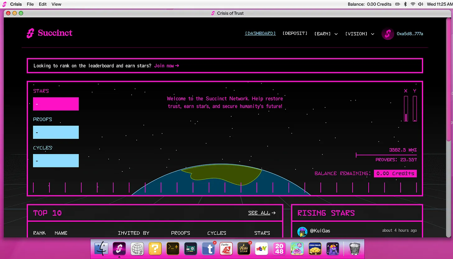 眼下实在很难对零知识证明的进展感到兴奋,但Succinct却凭借精彩的营销攻势成功吸引了我的注意:他们把测试网和官网仪表板做成了MacOS风格界面。