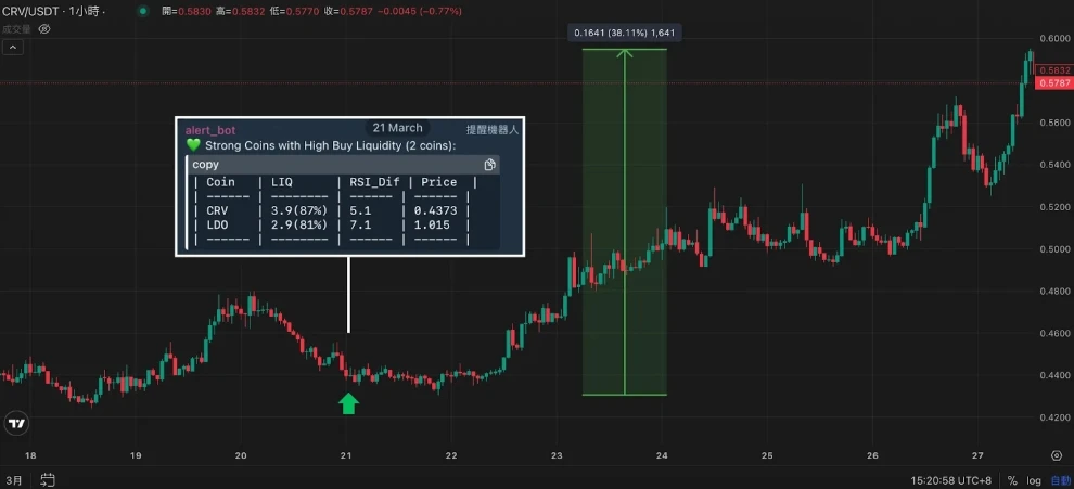 Token Screener:强势币种筛选工具,捕捉 $CRV 于ㄧ周内 38% 的强势涨幅