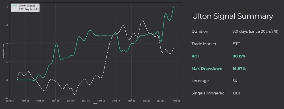 Ultron Signal:运行超过 300 天,绩效跑赢 BTC 的交易信号