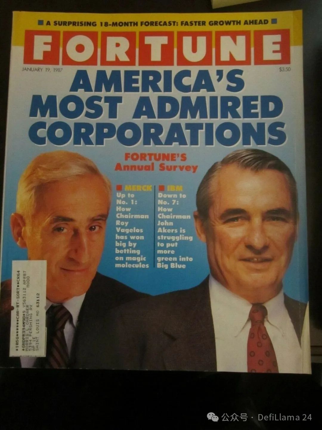1987 年,默克公司因"押注神奇分子"登上《财富》杂志封面,被评为"美国最受尊敬企业"。