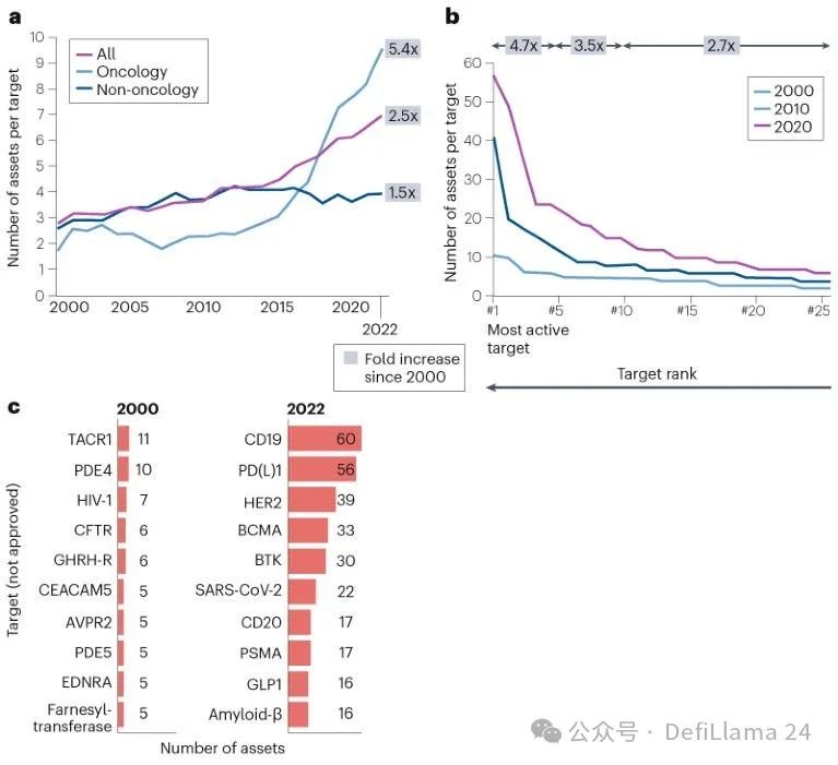 许多生物科技投资者已将此类分析推向了逻辑的极致。随着早期融资轮次规模及其背后资金的膨胀,将大量资本押注于完全未经证实的靶点假说上愈发难以自圆其说。实践中,这导致已验证靶点领域出现了严重的扎堆现象。