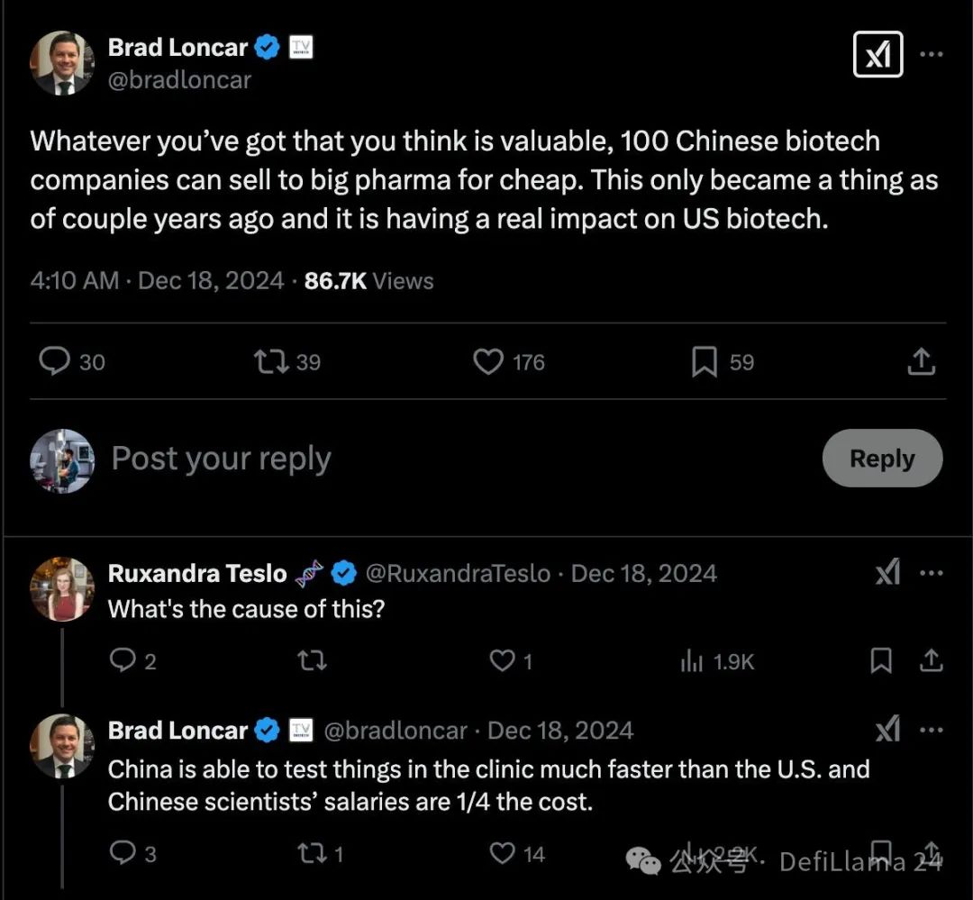 这意义重大。正如我们最近在人工智能领域所见,中国已成为生物科技领域不可小觑的竞争威胁,展现出快速开发能与美国实验室产品匹敌——甚至超越——的新药能力。换言之,“制药业正迎来其‘ deepseek 时刻 ’。”