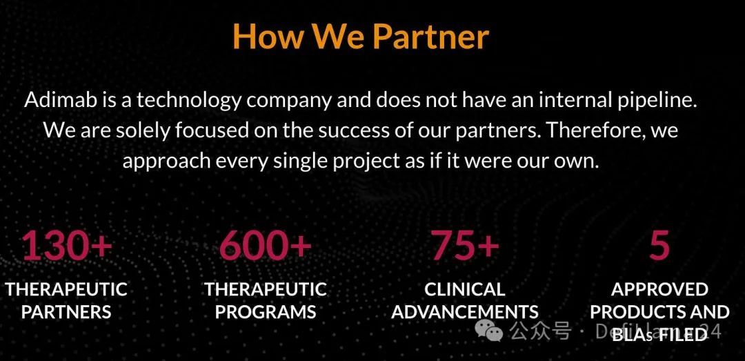 以 Adimab 为例。该公司成立于 2007 年,利用新一代抗体工程技术——即酵母表面展示技术——为众多合作伙伴快速生产新分子。目前,他们已与超过一百家不同伙伴合作,“源自我们平台的临床项目超过 75 个”。