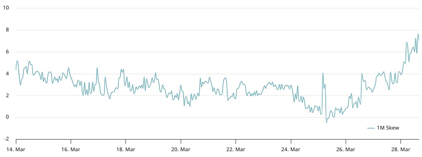 当交易者预期出现下降趋势时,25% 的 delta 偏差指标会上升到 6% 以上,显示对沖策略的需求更高。相比之下,看涨时期通常会将偏差推低至 -6% 以下。而目前该指标落在 7%,这表明专业交易员缺乏信心,从而增加了进一步看跌的可能性。