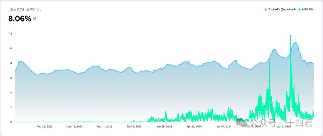 前面数据已经分析过了,Solana本身质押收益在8%年化左右,再通过jito的mevtip收益,可以达到10%左右,是个不错的空间。