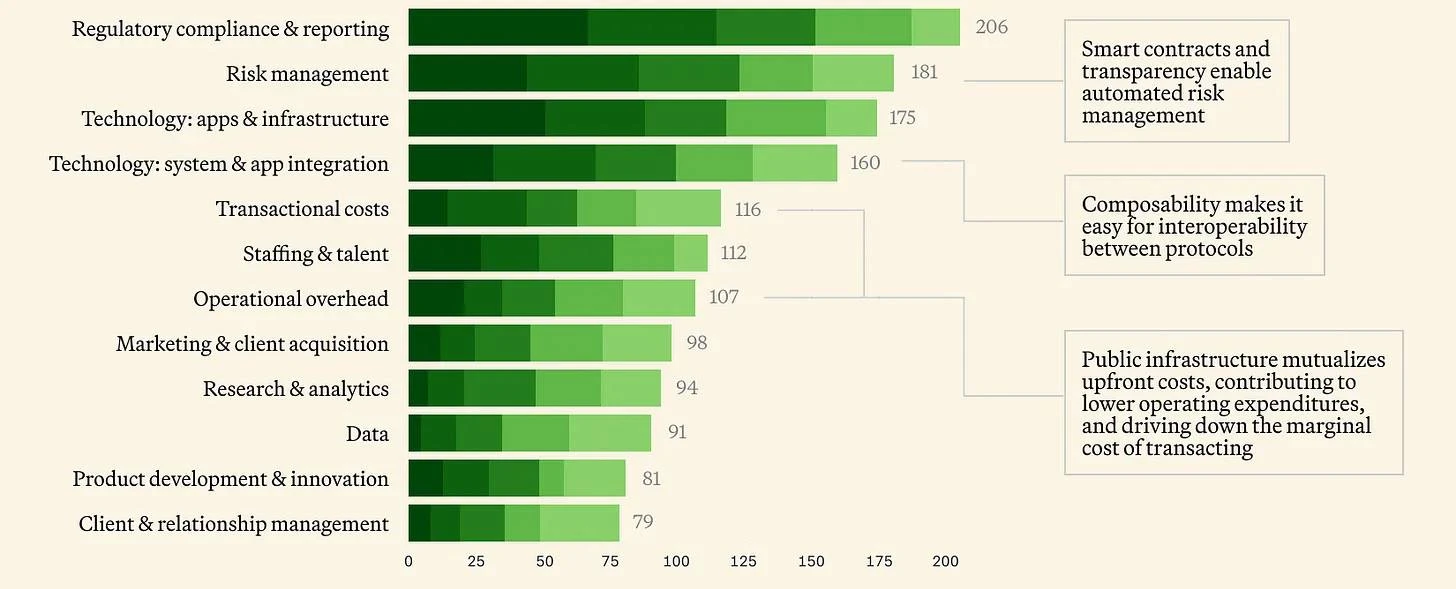 同时,它们也在以受控方式探索无许可的公共DeFi。其战略逻辑十分清晰:DeFi自动化且透明的协议能够实现更快的结算、全天候市场运作以及新的收益机会,从而解决传统金融(TradFi)长期存在的低效问题。