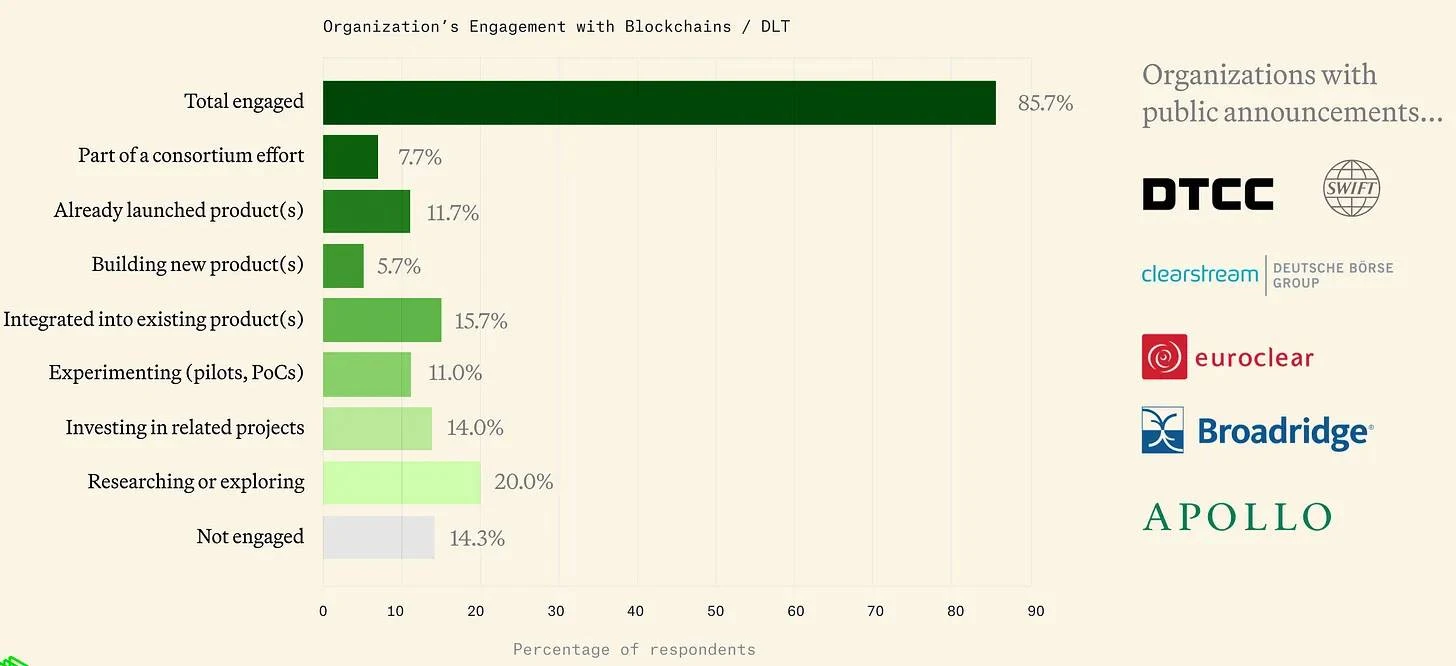 机构普遍将区块链网络视为简化传统后台系统、降低成本并进入新市场的有效工具。