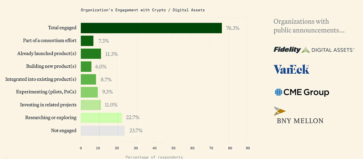 报告清晰地描绘了传统金融如何从初步试探到快速扩展的路径,为未来几年加密与传统金融的进一步融合奠定了基础。