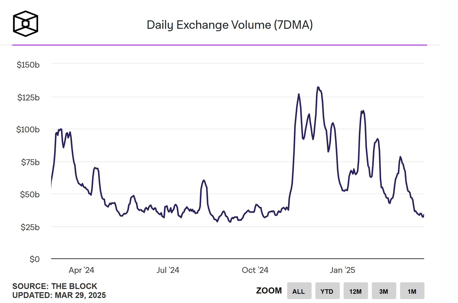 近期川普政府频频对主要贸易伙伴祭出关税措施,为市场增添了不确定性,导致传统与加密资产市场的交易热情双双降温。