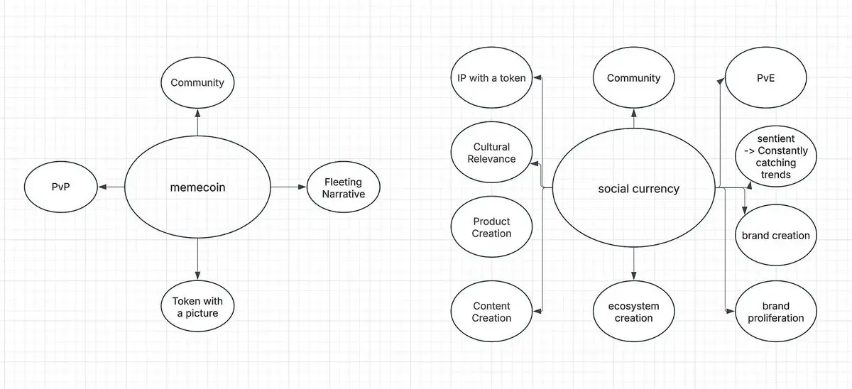 Meme 币不创造病毒效应——它们将病毒效应货币化,榨干热度直至消退。而社交货币具有感知力,能通过多种媒介、合作与集成主动推动其 IP,持续生成病毒效应。