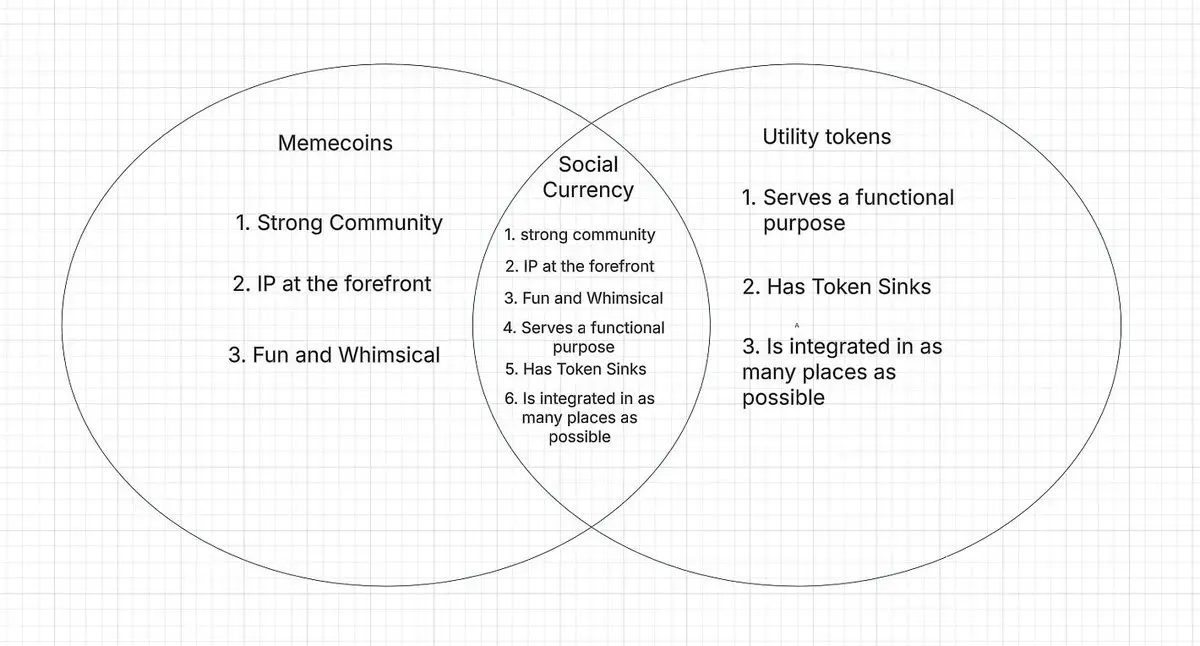 我深信加密货币普及的特洛伊木马是知识产权(IP),因为它能在缺乏信任阶梯的领域建立公信力,而 Meme 币与 NFT 一样,都是 IP 的一种形式。Meme 币拥有巨大机会,通过深入普通人的心智来推动加密行业发展。然而,它们并未突破加密原生角色的潜力边界,反而在超越之路上停滞不前、缺乏原创、平庸乏味。我担心,如果维持现状,它们将弊大于利。要让这一类别蓬勃发展,Meme 币必须进化,而我坚信进化方向就是成为社交货币——这种代币将超越懒惰的拉盘砸盘,转变为可扩展、令人难忘且备受喜爱的 IP。