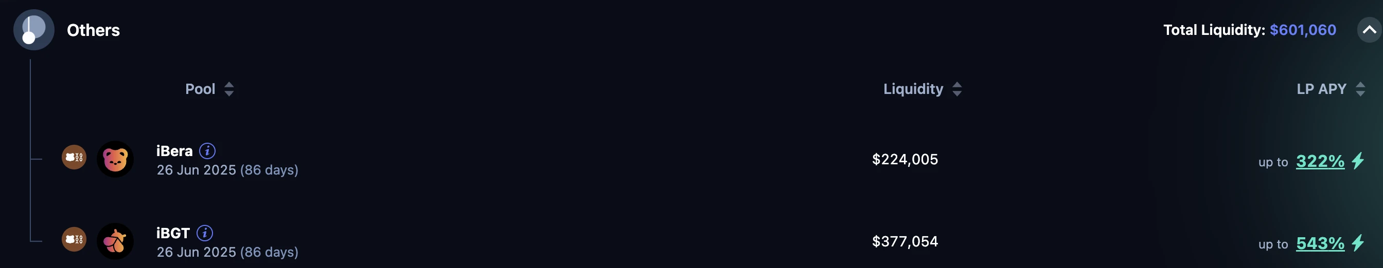 不过,借助 Berachain 生态的 PoL 流动性质押协议 Infrared,这一 APR 数据可上升至 5.3% 左右(因为 iBGT 较 BERA 有一定溢价),同时可保持与 Infrared 的长期交互 —— 虽然 APR 数字并不太理想,但我个人还是比较建议挖这个矿,因为 Infrared 大概率会是整个 Berachain 生态市值想象力最高的项目,潜在空投预期较大。