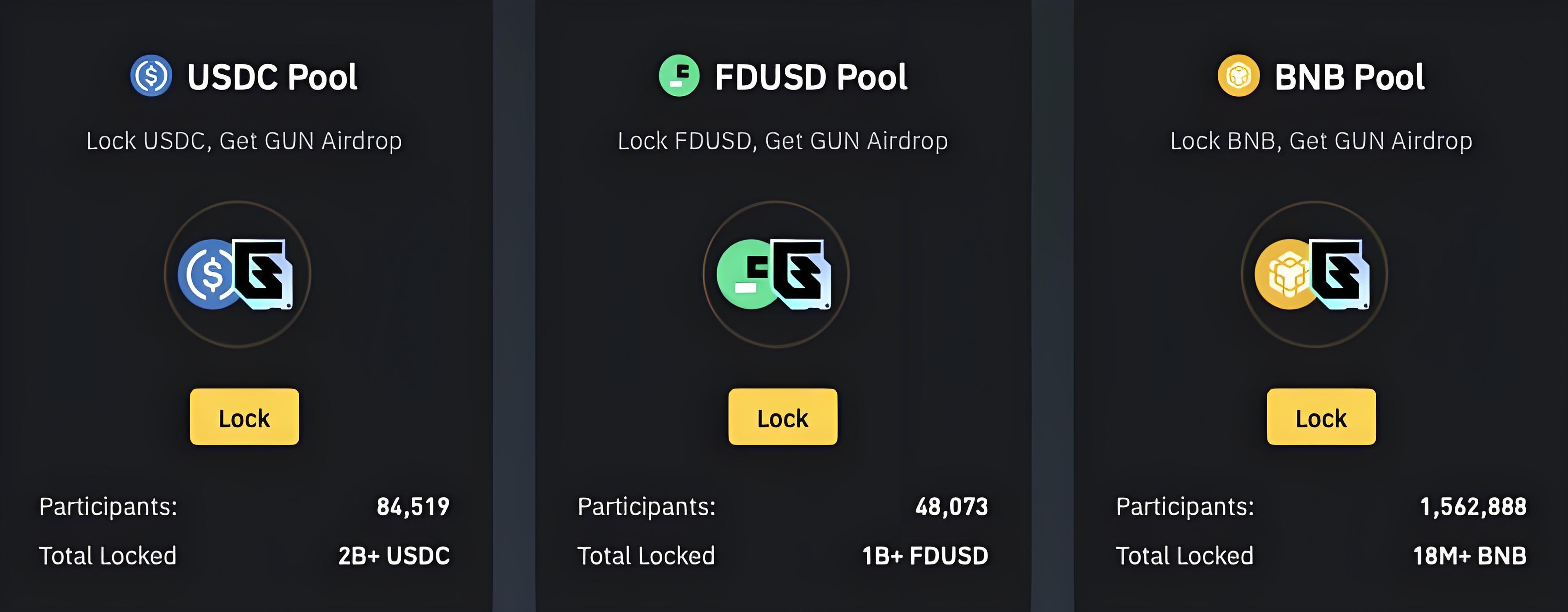 用户可以通过币安 Launchpool 平台参与 GUN 代币挖矿: