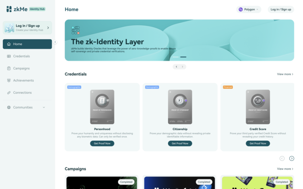 - zkMe (zk.me) 作为一个隐私保护的身份预言机,将来自 Web2 平台的文件和数据转化为选择性的链上证明。