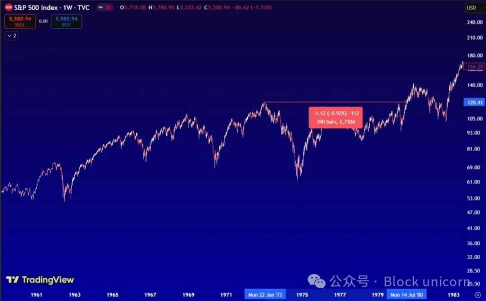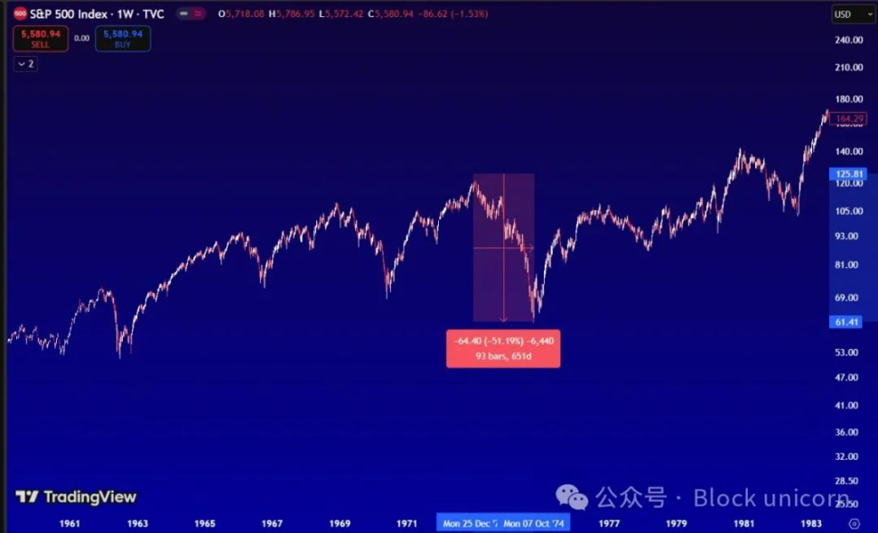 这场熊市很可能会比上一次更糟。我并不是指价格方面,我的意思是它可能需要数年的震荡才能触底。我认为一年内 75% 的回调远没有三年内 50% 的回调那么痛苦。想象你是 70 年代试图在滞胀期间购买标普指数的投资者。虽然有很多机会,但它花了 7 年时间才创下新高(1973-1980)。此外, 70 年代的第二次下跌趋势花了 2 年时间完成了 50% 的回调。第一次修正也花了近 2 年时间完成 38% 的下跌(1968 年 11 月至 1970 年 6 月)。还要记住,这是一个滞胀时期,即高通胀、低增长或负增长。按实际价值计算,那 50% 的回调比表面上要糟糕得多。我稍后会更多地讨论滞胀,因为我认为这是更广泛经济的最坏情况。