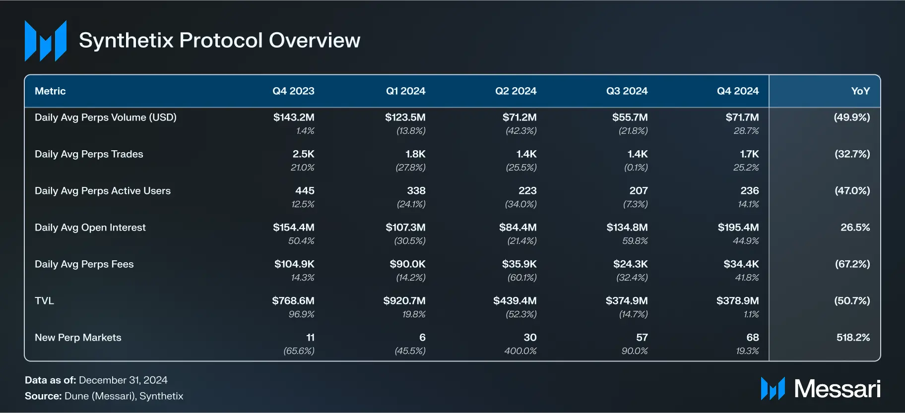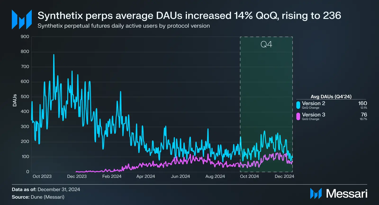 在经历了 2024 年全年的下滑后,第四季度 Synthetix 的整体活跃度指标出现回升。