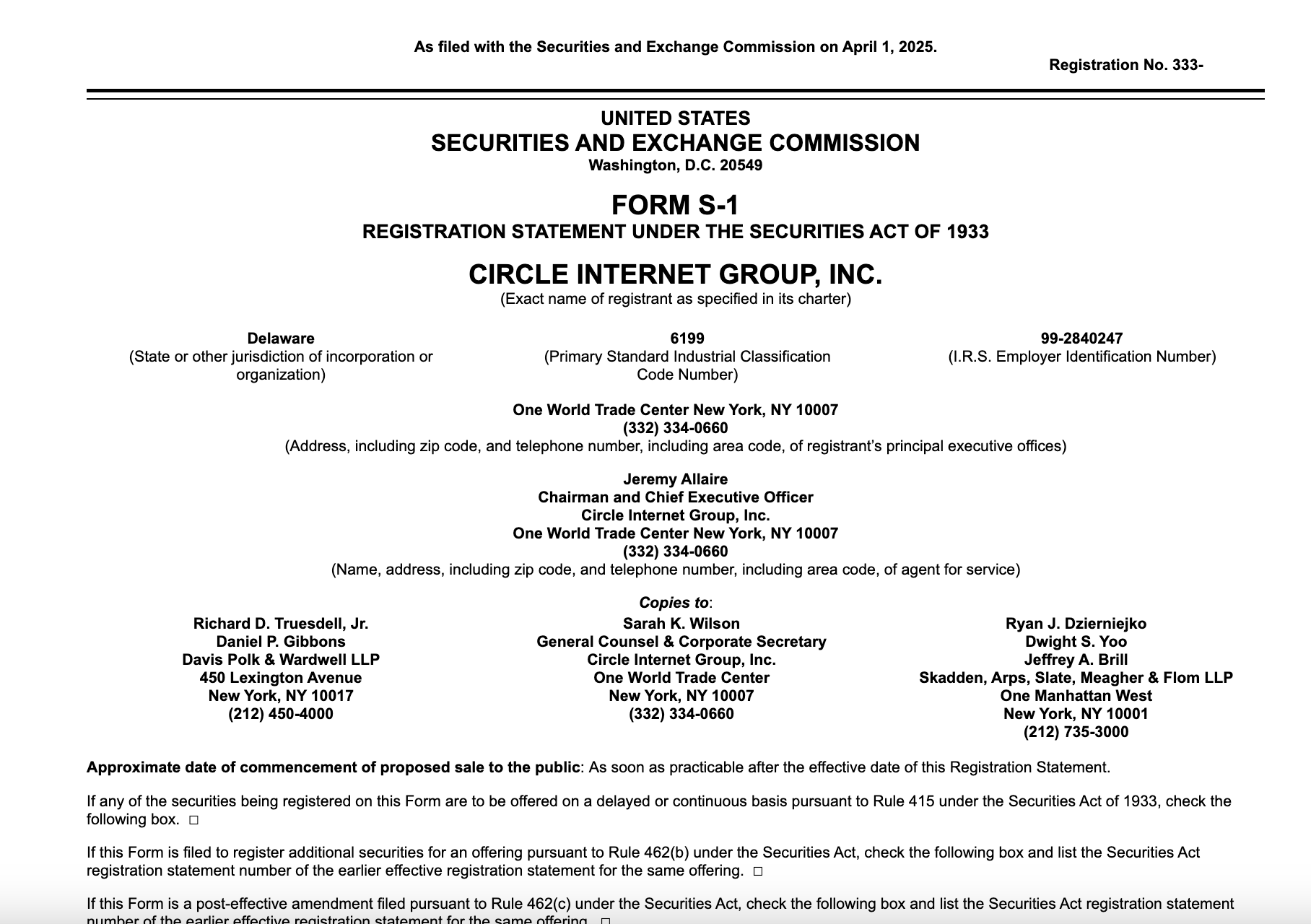 在美国众议院计划修改并表决稳定币监管法案GENIUSAct的前一天,美SEC网站文件显示,Circle向SEC提交S-1文件,拟进行首次公开募股,股票代码为“CRCL”,并申请在纽约证券交易所上市。与此同时,Circle已聘请摩根大通和花旗银行协助其IPO,这两家机构也曾是Coinbase IPO的财务顾问团队成员。