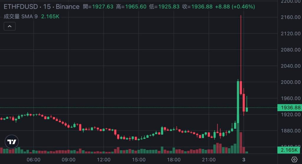 受 FDUSD 大幅脱钩影响,BTC 稍早最高更一度触及 98,950 FDUSD、以太坊最高突破 2160 FDUSD…不过随著脱钩情况缓解,溢价又大幅下跌。