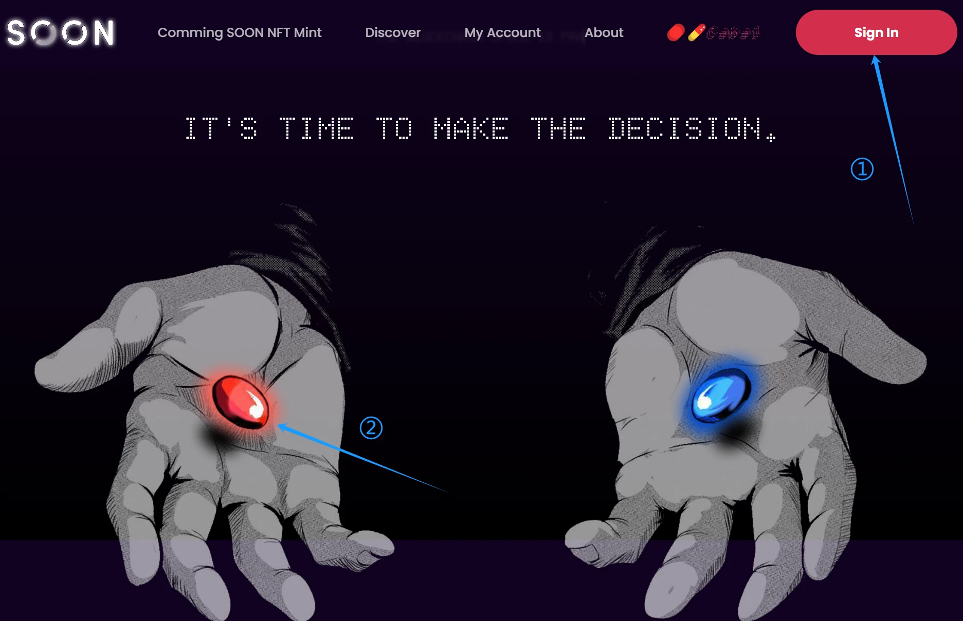 用户如若在此之前没有参与过 SOON 的相关活动,那么在进入官网时须点击首页闪动的“Cabal”标签(就是有两颗红色药丸的地方)注册一个 SOON SVM 钱包才能进行其它操作,直接使用 OKX Wallet 就可以,然后进行签名确认。为保证快速链接到该页面,笔者直接附上该页面地址 (链接: https://redpill.soo.network/ )。该钱包在存款任务中也需要用到,如有 NFT 的用户,可直接使用持有 NFT 的钱包。