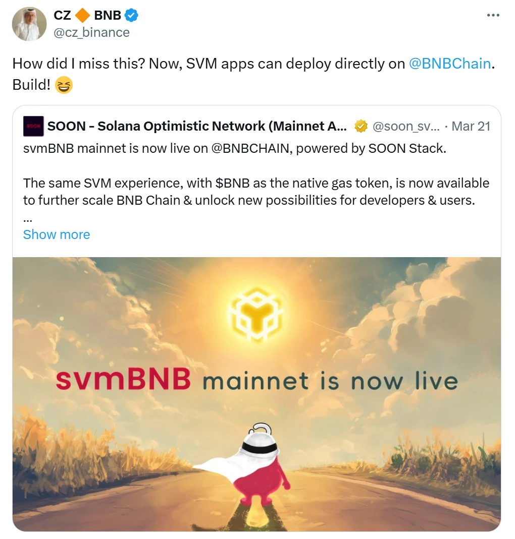 近期,币安创始人 CZ 转发了 SOON 项目的官方推文。 这一举动迅速点燃了市场情绪,许多用户认为这是 SOON 在 SVM 赛道中巨大潜力的强力背书。尤其是在其 BigBang 计划和 COMMing SOON NFT 的推动下,SOON 的发展前景被广泛看好。 本文将重点解析 SOON 的 BigBang Season 及 NFT 的参与方式,并探讨潜在的空投机会。