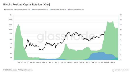长期持有者也抱有乐观期待,据Glassnode 监测,购买 BTC 时间为 3-5 年的投资者所持财富占比自2024 年 11 月峰值以来已下降3个百分点,但该比例仍保持在历史较高水平,显示出2020 年至 2022 年期间入场的大多数投资者仍在持币,而非恐慌抛售,这部分投资者也是比特币稳固的价格支撑。机构们也暂未离场,据 Farside 监测,在经历了连续3天的流出避险外,4月2日美国比特币现货 ETF 再度实现净流入 2.181 亿美元。