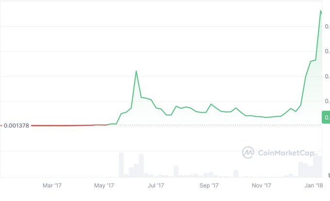 直到2018年1月然后时间到来2018年1月,这个彻底刷新了我彻底刷新了对市场认知的月份。山寨币不仅迎来反弹,更是发生了爆发式增长。TRX在短短几周内翻了100倍,无数曾被口诛笔伐的项目强势回归,有的暴涨十倍,有的涨幅更多。市场陷入一片狂热,每个人都觉得自己是投资天才。