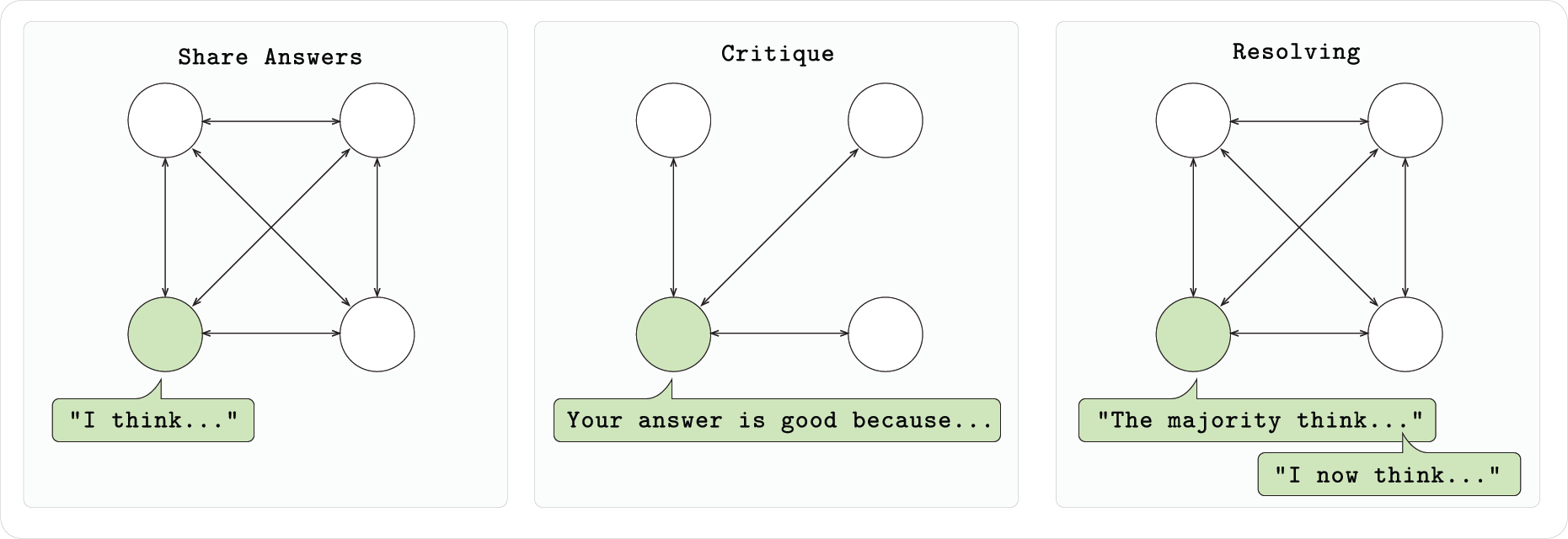 基于RL Swarm系统,模型不仅依赖自身反馈,还通过观察和评价其他模型的表现,识别出自身的不足并进行优化。每一个加入 Swarm 的模型节点都在参与一个三阶段的过程:首先独立完成问题并输出思路与答案,然后查看其他节点的答案并提供反馈,最终模型投票选出最优解,并据此修正自己的输出。这种协同机制不仅提高了每个模型的表现,也推动了整个群体模型的进化。加入 Swarm 的模型在离开后仍能保留改进后的本地权重,获得实际收益。