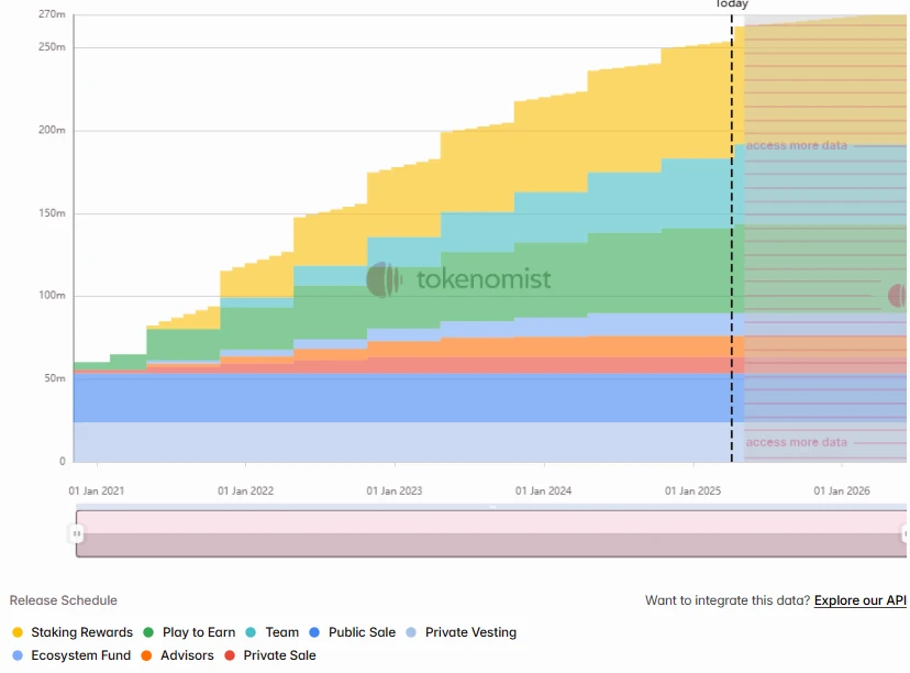 AXS 解锁共有三类对象,分别为团队 574 万枚(价值 1566 万美元)、游玩奖励 270 万枚(737 万美元)、质押奖励 65.2 万枚(178 万美元)。