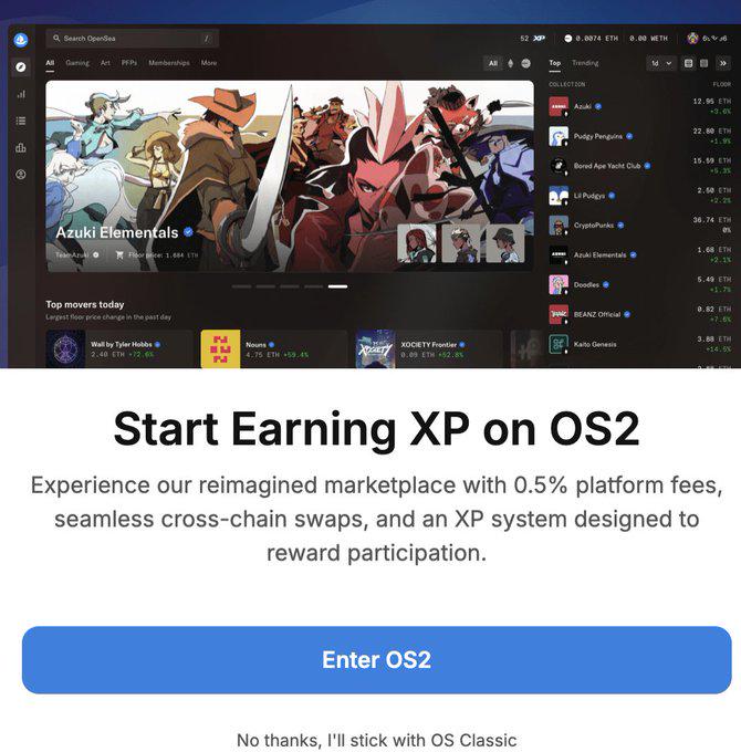 2025年2月,Opensea突然宣布“我们要发币了”,Jason下班回家后顺手点开了官网,映入眼帘的是熟悉的套路:积分、盲盒,还有经验值(XP)