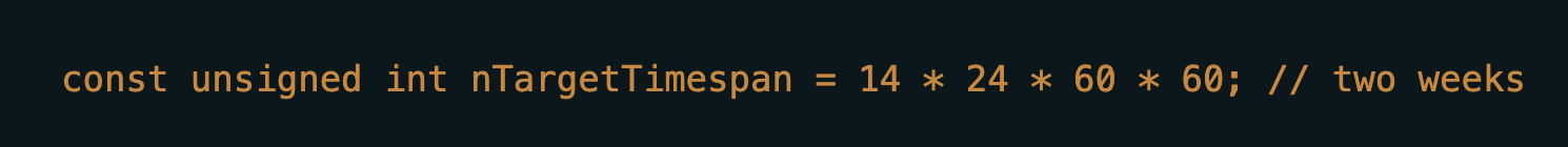 虽然0.3秒的漏洞本身不是重大问题,但存在一个相关的问题,这是一个较为严重的漏洞。难度计算基于每个2016区块窗口内的第一个和最后一个区块。这也是错误的。在我们看来,相关周期应该是前一个2016区块窗口的最后一个区块与当前窗口的最后一个区块之间的差异。这似乎是计算难度调整窗口长度的最合理方式,其中关键是时间跨度覆盖不同的调整窗口。如果这样做,那么2016也将是计算目标的正确间隔数。也许中本聪犯这个错误的原因是他必须考虑第一个难度调整周期,而该周期从未有过前一周期的最后一个区块可用。