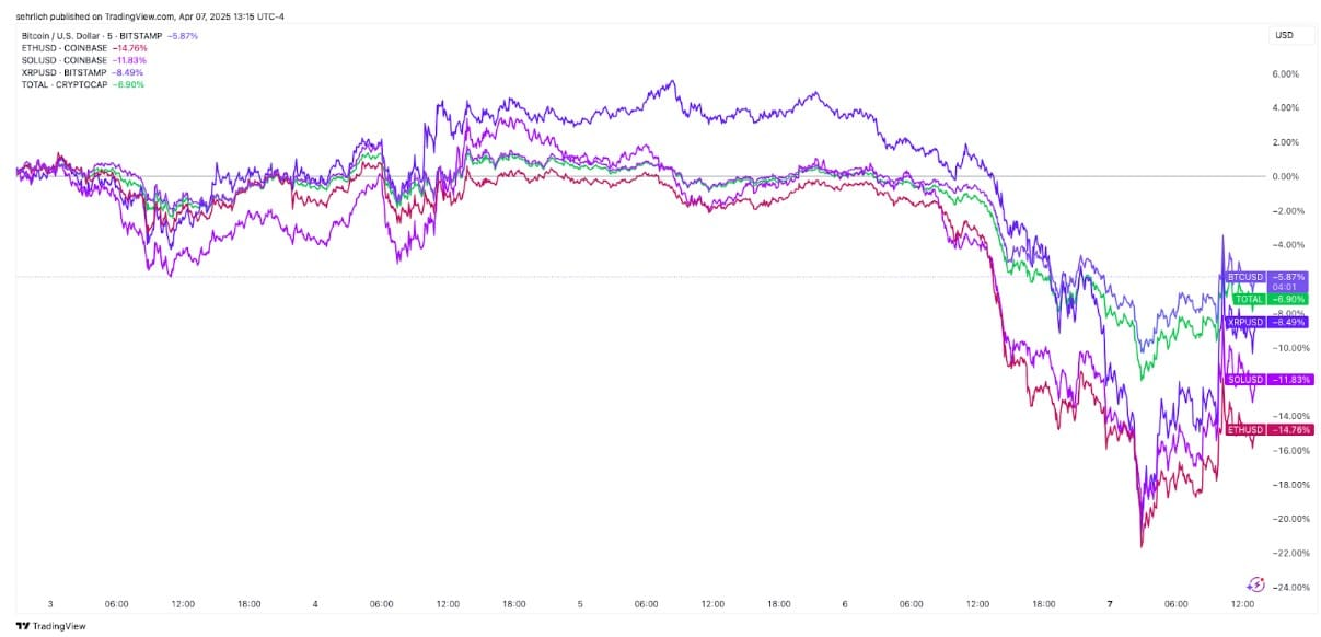 由于特朗普总统上周三宣布大规模且无差别的全球制裁,加密货币继续随整体市场下跌。截至撰稿时,比特币自那时起下跌了5.86%,这还是在首次跌破75,000美元(自11月5日大选以来的首次)后有所回升的情况下。其他大市值加密货币如ETH、Solana和XRP在这段时间内的表现同样不容乐观,均跑输市场领头羊。