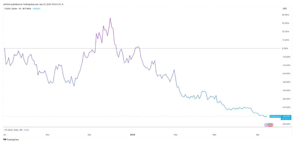 EigenLayer曾是市场上最受期待的项目之一,但其代币在去年10月上线、牛市接近顶点时推出,随后价格暴跌超过80%。但如果当前的叙事成立,这反而意味着投资者可以以大幅折价买入。一位投资人补充道:“EigenLayer现在市值还不到10亿美元,这种时候就是买入并持有的机会。”