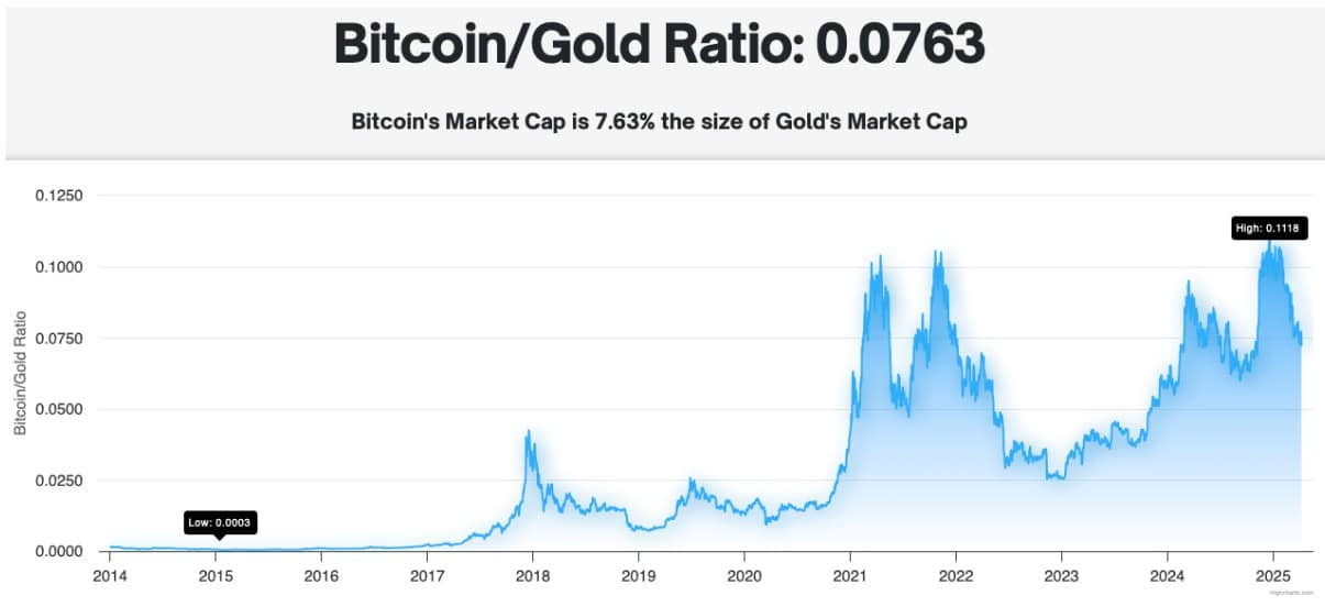 当前黄金市值约为20.4万亿美元,而比特币的市值仅为1.64万亿美元。一位投资人指出: “要与黄金达到1:1的市值比,比特币至少还要上涨12到15倍。 在当前环境下,这是最容易看懂、也最有把握的机会。”