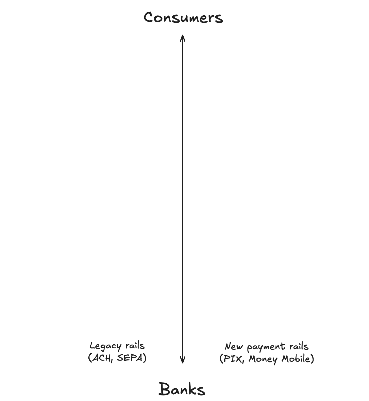 然而,“支付”这个词涵盖的范围很广。如今的支付体系主要由传统支付渠道、银行和金融科技公司主导,它们在 Web2 支付体系中各自扮演着不同的角色。尽管稳定币相比传统系统提供了更高效、更易用的替代方案,但加密货币支付体系正在逐渐呈现出与 Web2 体系相似的复杂性,因此值得我们深入剖析。