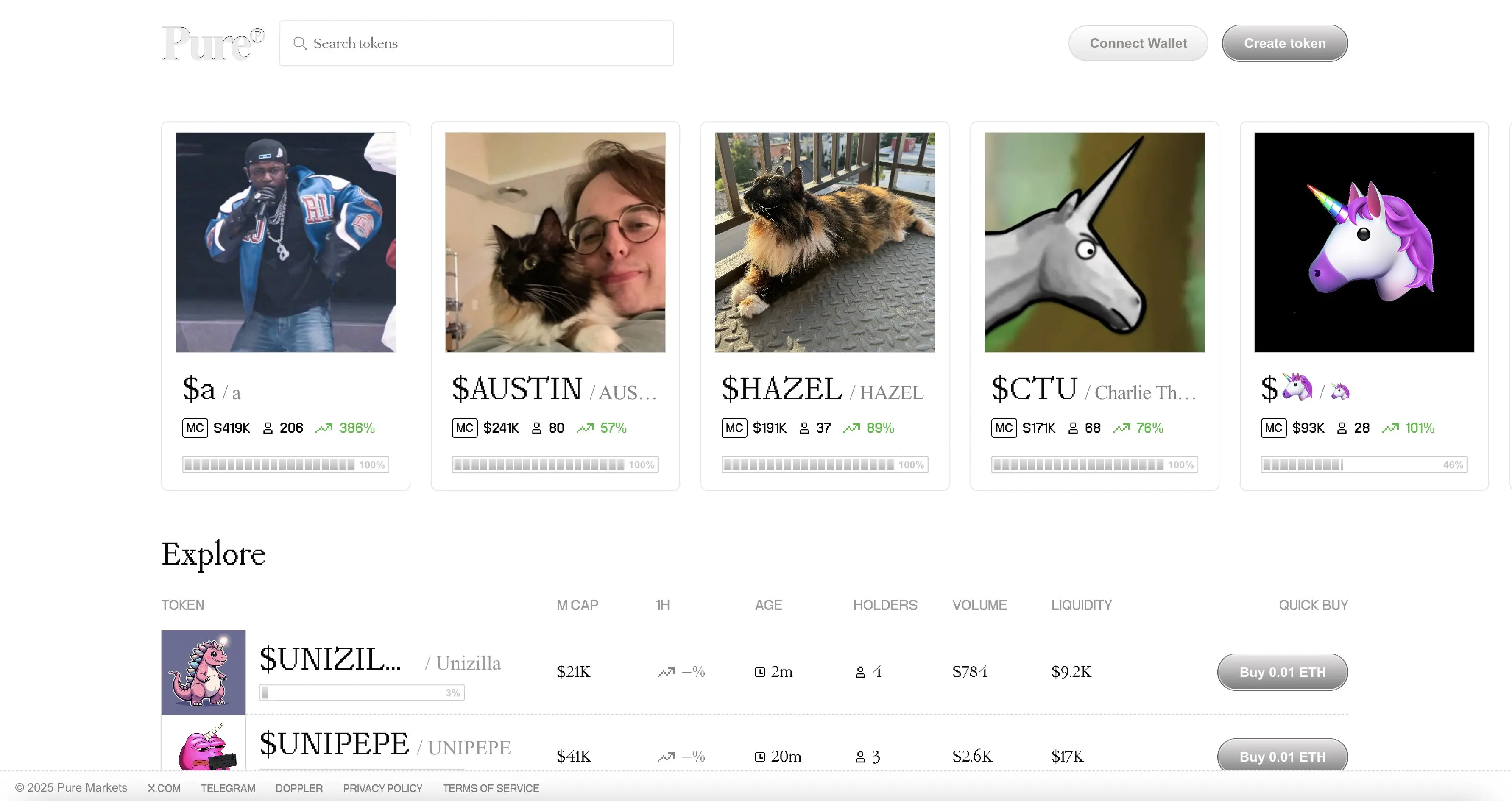 Pure Markets 是 Unichain 生态第一个原生代币启动平台,在 Unichain 主网上线后推出,同时已经扩展至 Kraken 的 L2 ink 和 Coinbase 的 L2 Base。