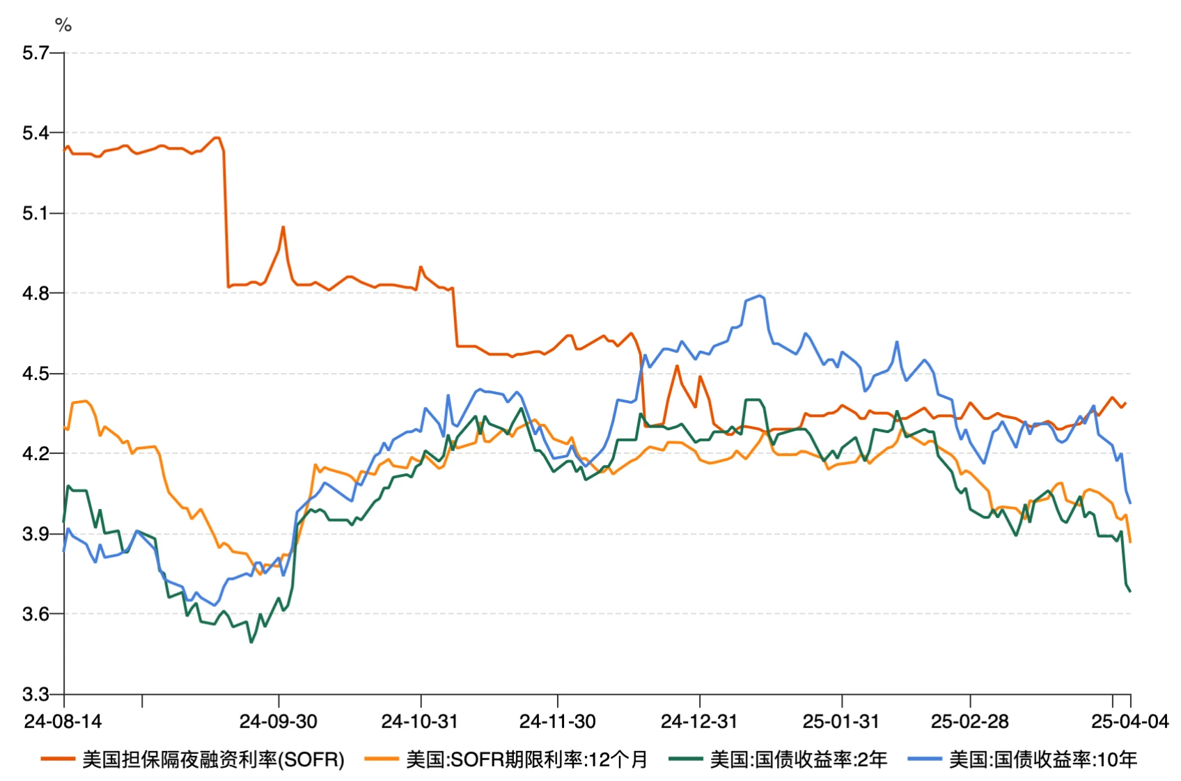 SOFR 远期利率下行明显,显示市场预期美联储提前降息。