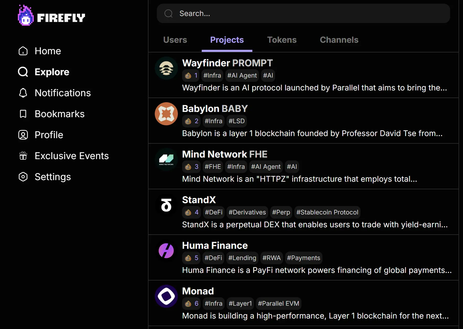 #案例2:Mask Network 旗下 Firefly 集成 Top100热门榜单,呈现市场热门项目趋势。