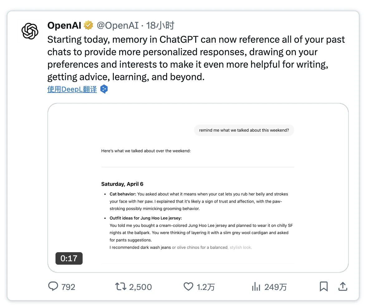 与此同时,许多人开始思考:“既然这么多代理应用都在使用集中式技术,那我的数据是谁拥有的?我的数据会去哪儿?如果我与 AI 讨论一些私密的内容,它会保密吗?还是会泄露出去?”这一问题尤为重要,尤其是因为 OpenAI 最近的更新中提到,ChatGPT 现在能够引用你过去的聊天记录,以提供更个性化的回应。
