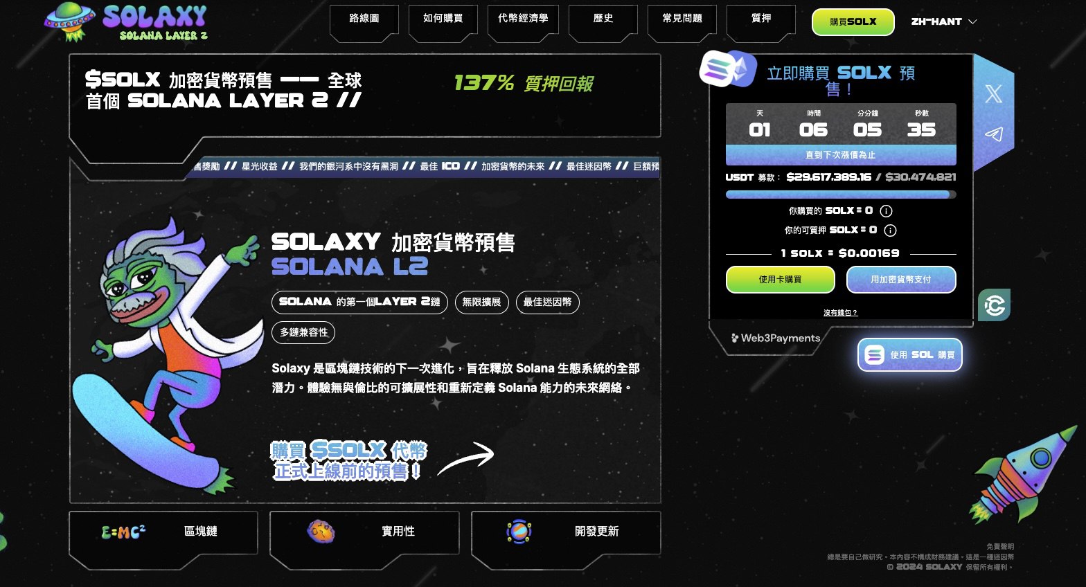$SOLX仍在预售阶段,在预售结束后再上市DEX及CEX,建议投资者可进入官方网站、X及Telegram了解预售最新资讯。