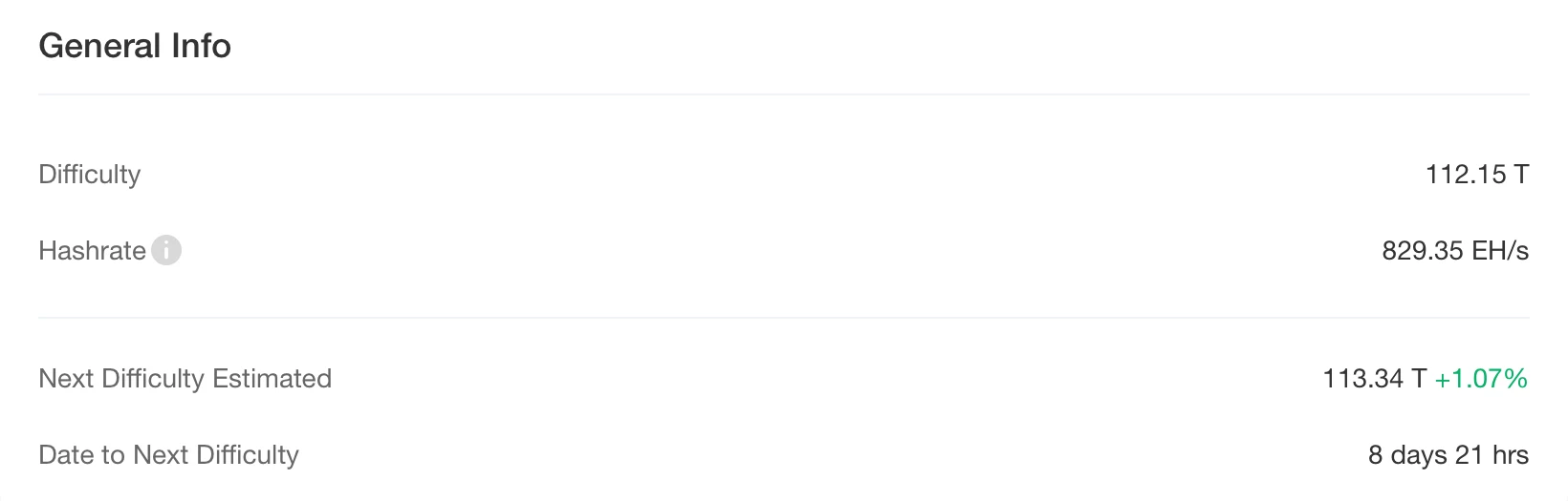 该现象反映出在当前市场环境下,矿工利润空间被显著挤压,特别是电价偏高或使用低能效设备的矿工,尤其是依赖上一代 ASIC 矿机的中小型矿场,可能已经步入边际亏损甚至全面亏损区间。历史数据显示,当成本价格比持续高于 1 时,通常会导致一部分低效算力退出市场,推动全网算力回落,并触发挖矿难度的向下调整(Difficulty Adjustment Down),以重新平衡网络运作成本与进入门槛。