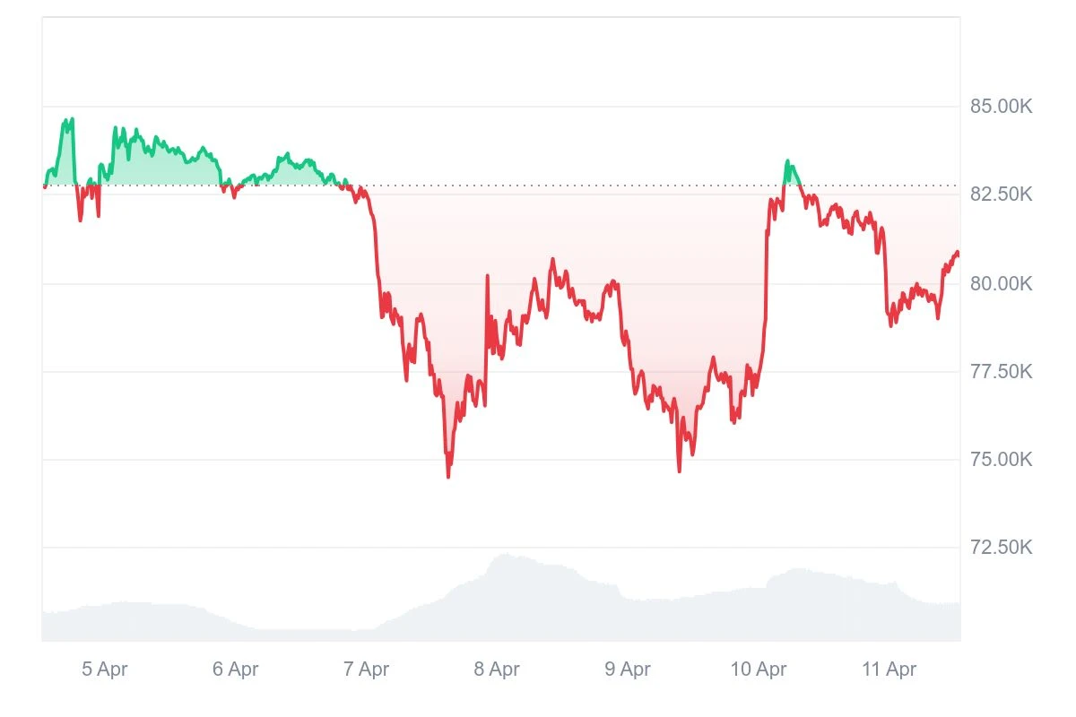 在 2025 年 4 月 5 日至 4 月 11 日期间,比特币具体走势如下: